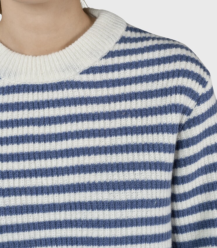 - mit überschnittenen Schultern, Rundhalsausschnitt und breiten Rippstrickabschlüssen an Hals, Ärmeln und Saum