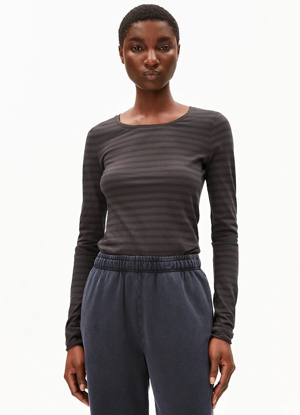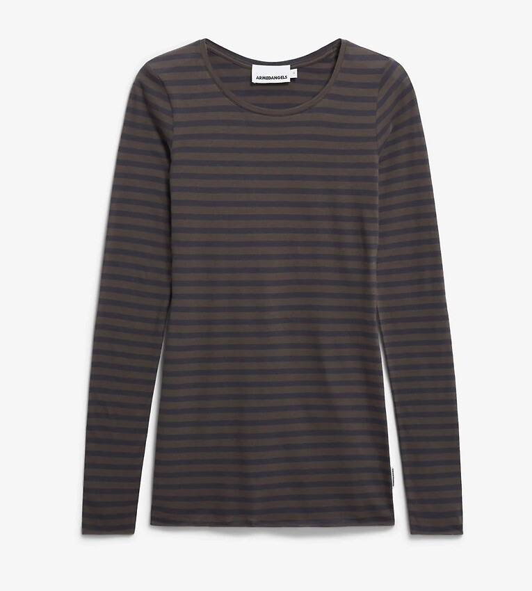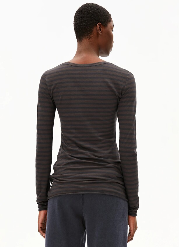 Longsleeve "Einiaraa Stripes" - walnut cream/dark steel