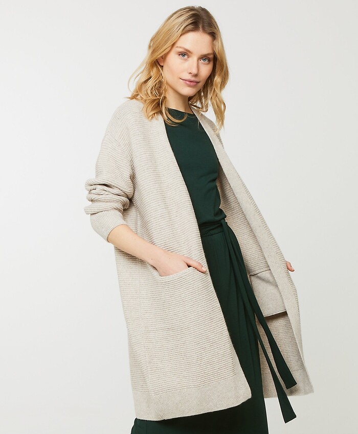 Strickjacke aus Bio-Baumwolle & Bio-Wolle.