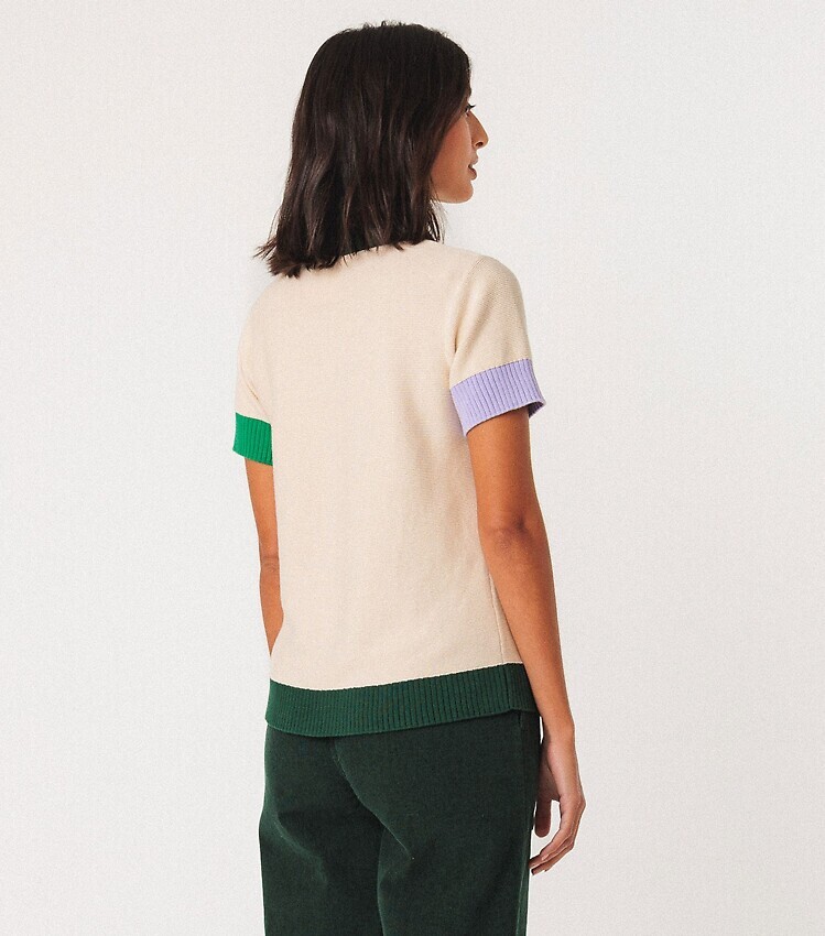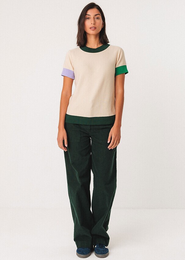 - kontrastfarbig gerippt an Ausschnitt, Saum und Bündchen
