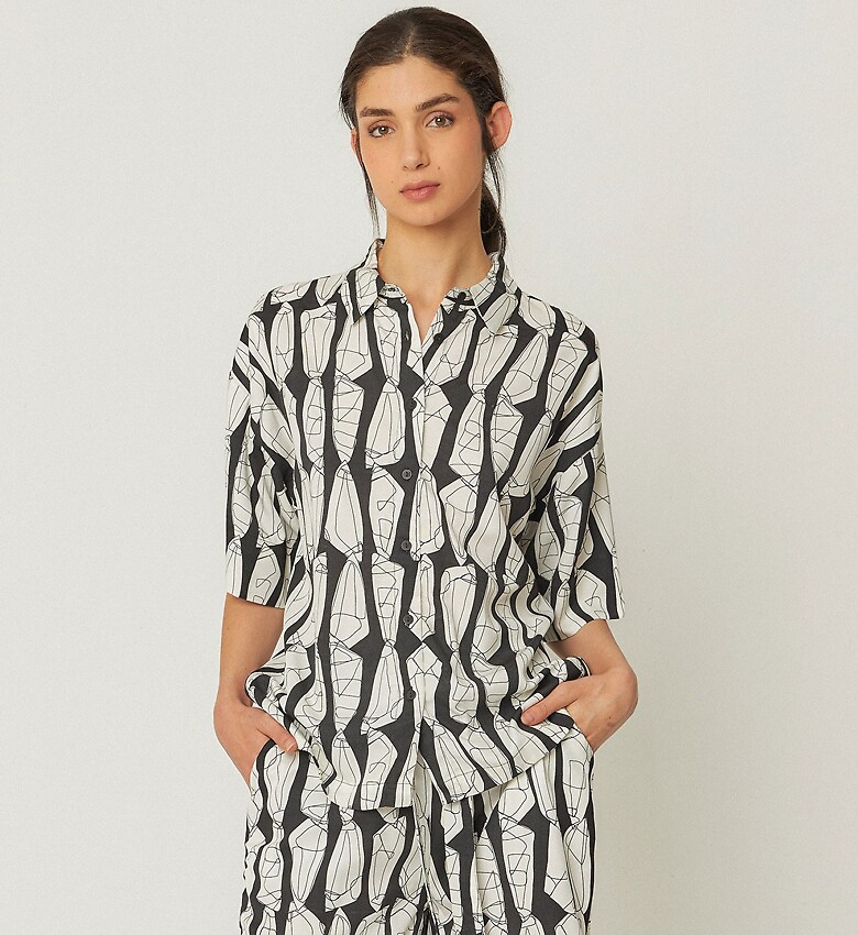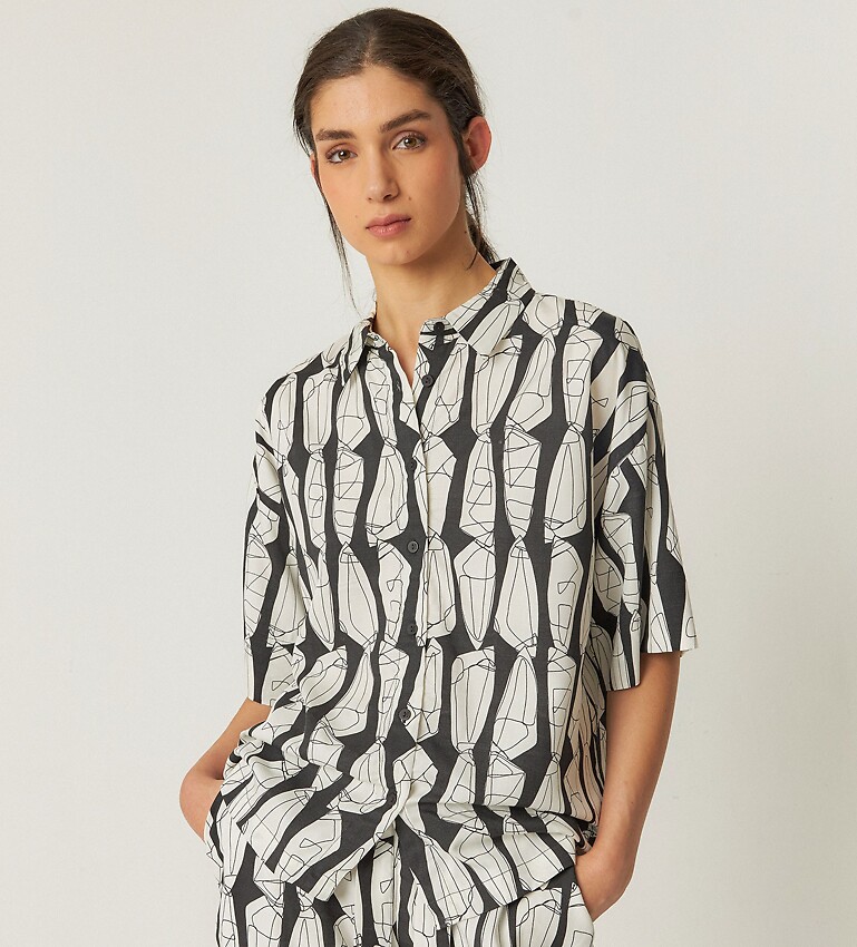 Roomy boyfriend shirt with classic collar, short sleeves and front button closure.