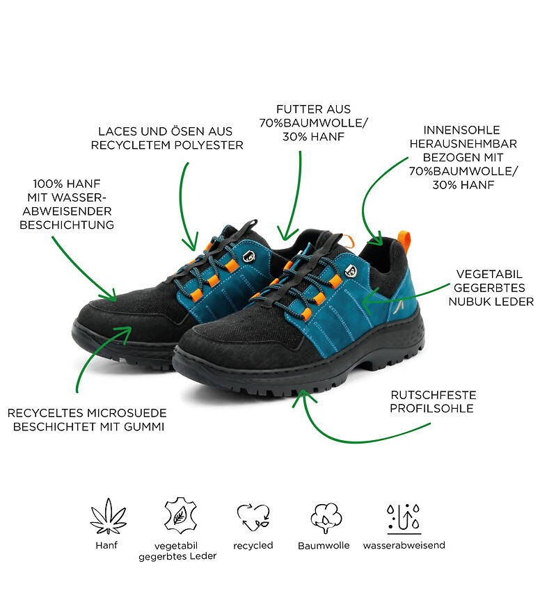 Grand Step Hiking Low Hemp - petrol/black