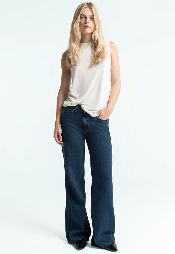 Entspannte Flared-Jeans in einer dunklen Used-Waschung