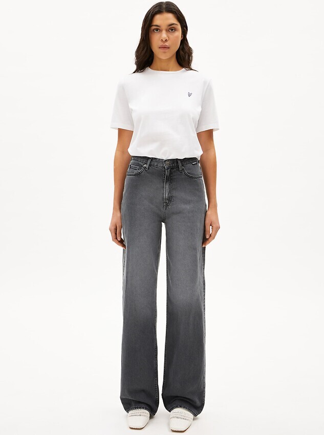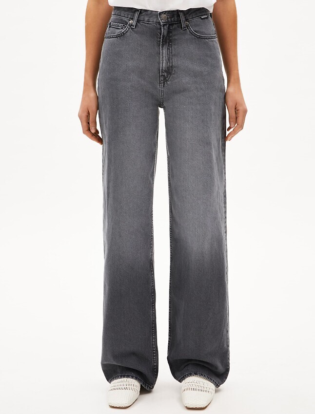 Lässig geschnittene Jeans mit weitem Bein und hoher Taille aus festem Denim aus 100% recycelter Baumwolle.
