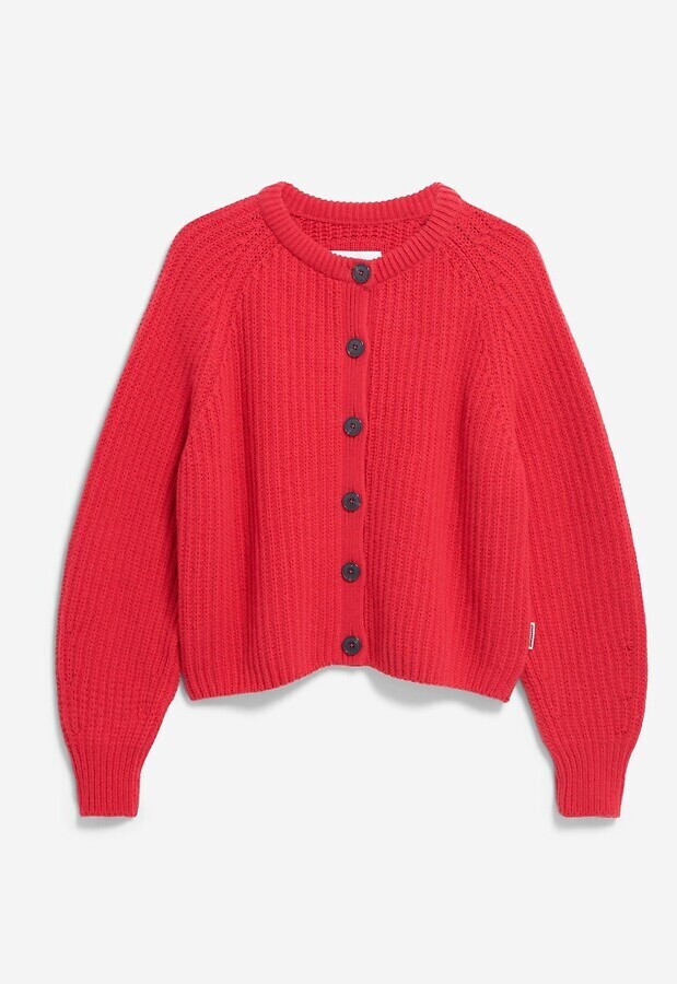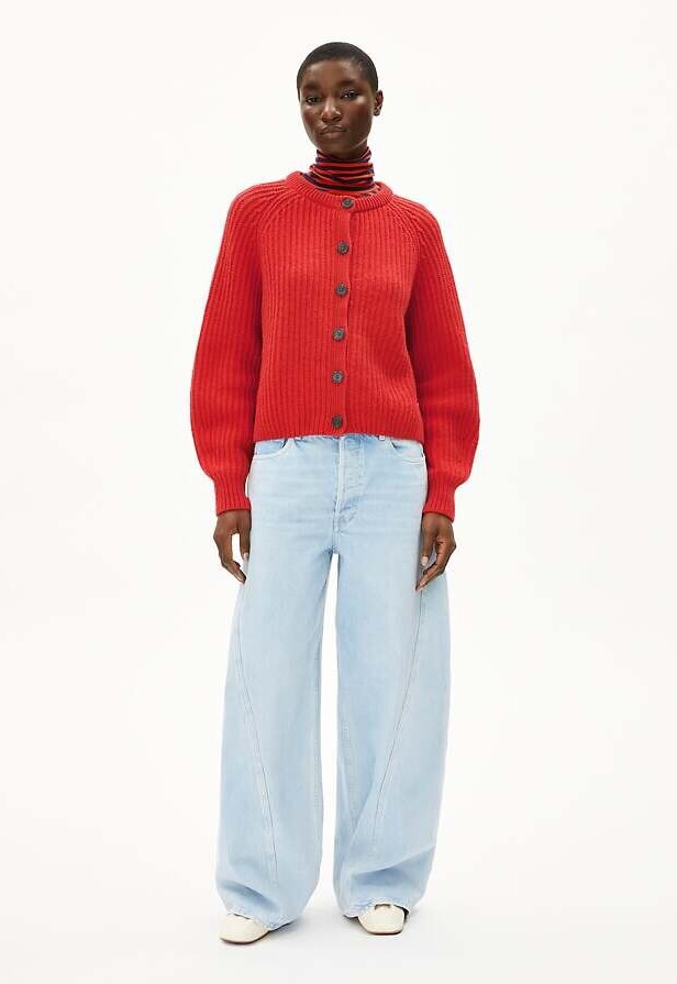 Grobstrick-Cardigan mit markanter Rippstruktur und einer entspannten, großzügigen Passform.