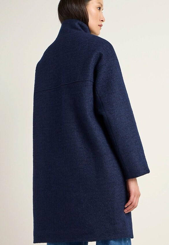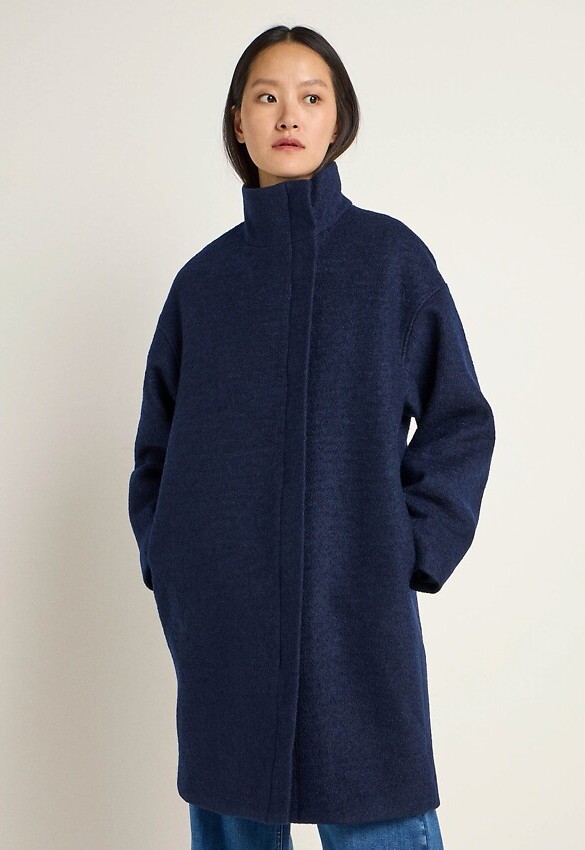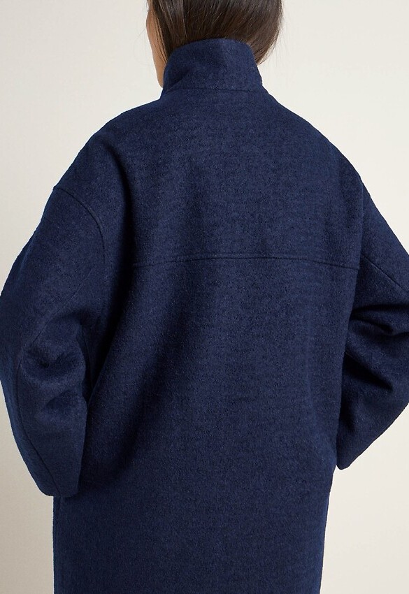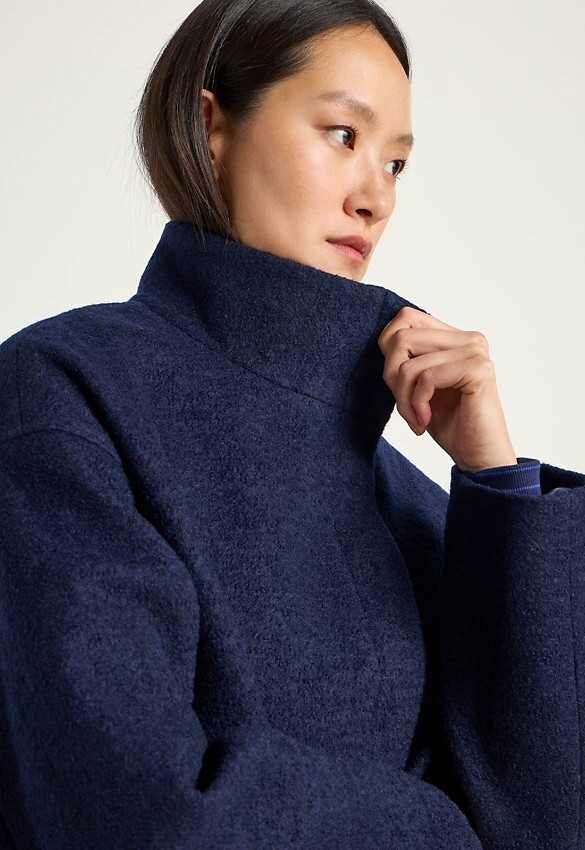 Walkmantel in einem Oversized-Schnitt mit Stehkragen aus hochwertiger Bio-Schurwolle und Bio-Baumwolle.