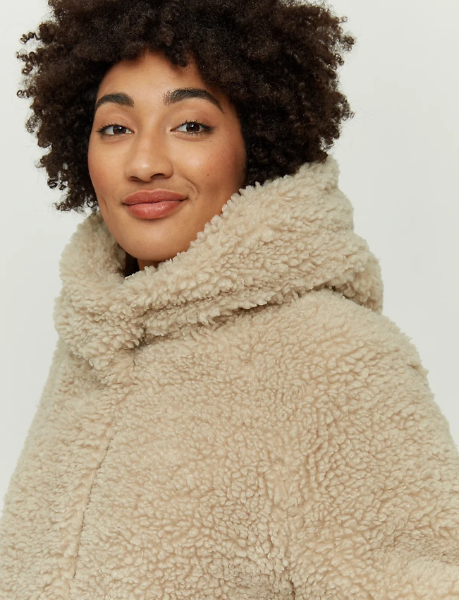 Cosy coat with an oversized fit, raglan sleeves and a classic button fastening made of soft faux fur.