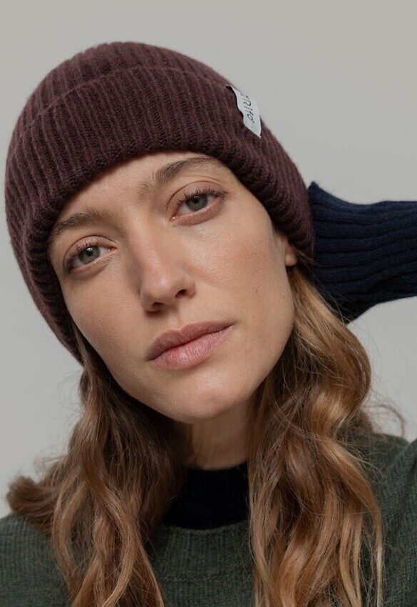 Strick-Mütze aus recyceltem Kaschmir.