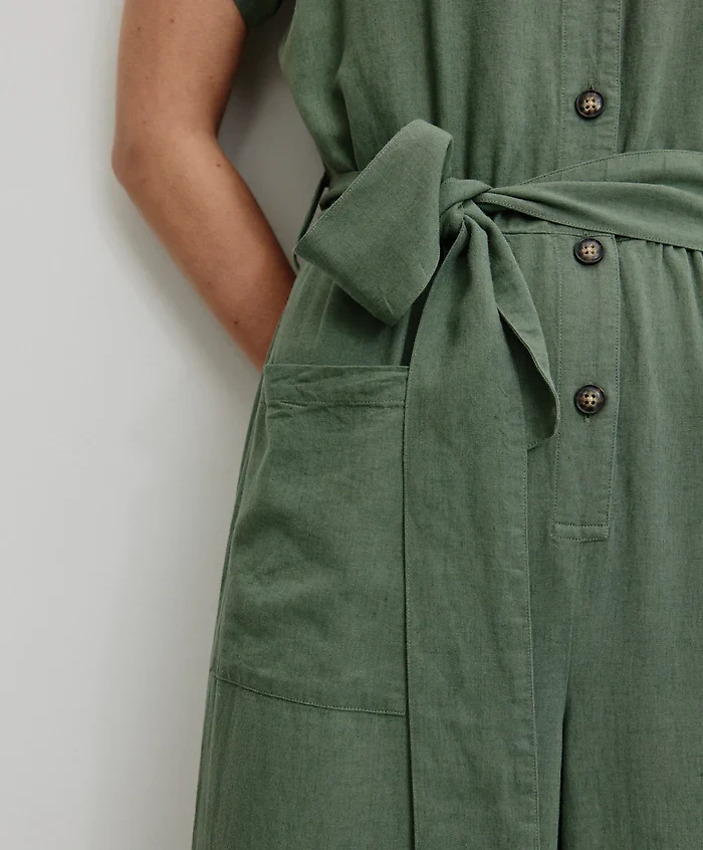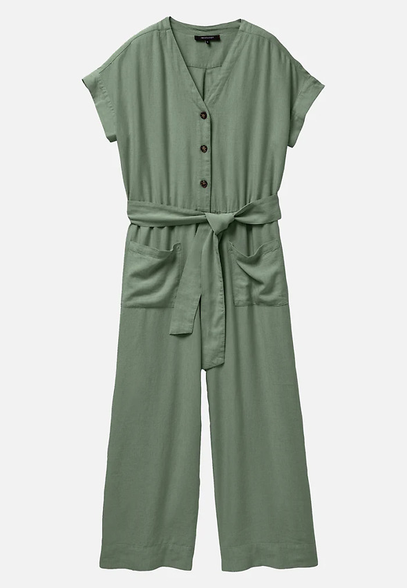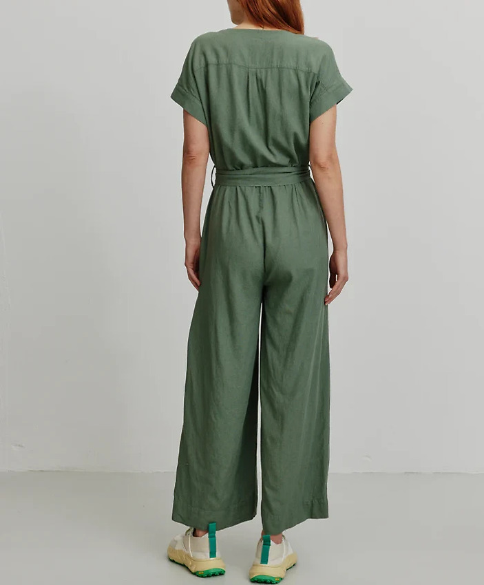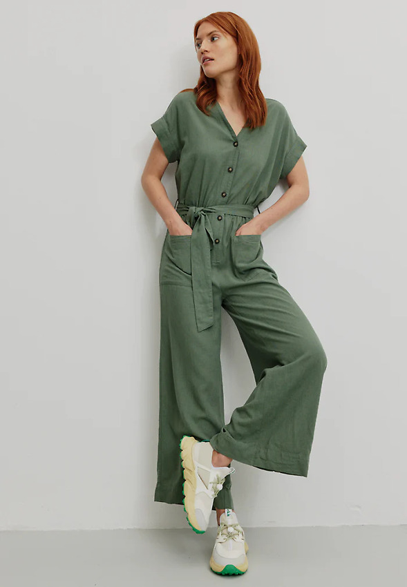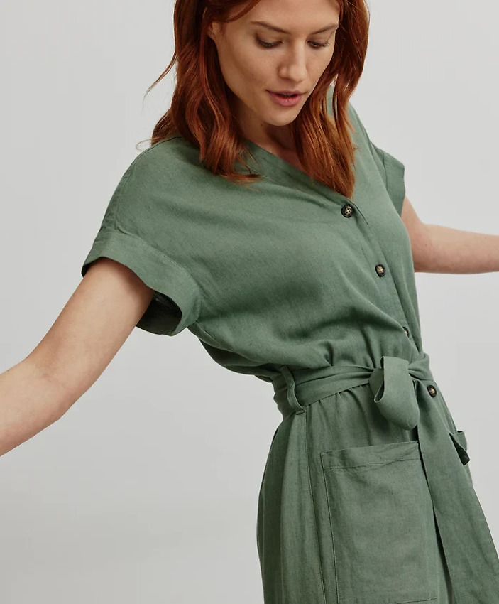 Onepiece with V-neck made from breathable summer mix of LENZING™ ECOVERO™ fibers and linen.