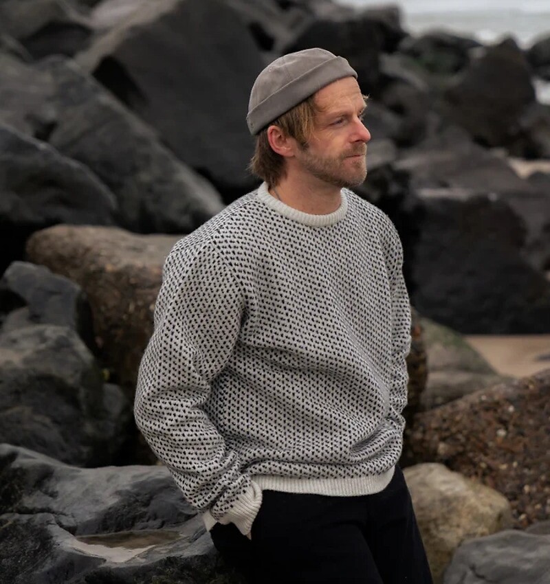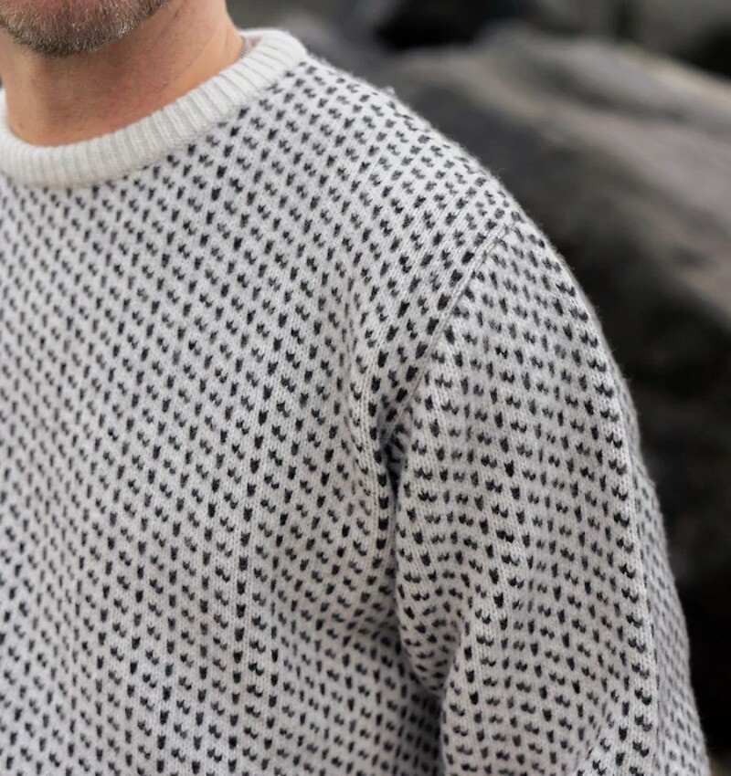 Warm knit sweater made from soft lambswool and recycled polyamide for durability.