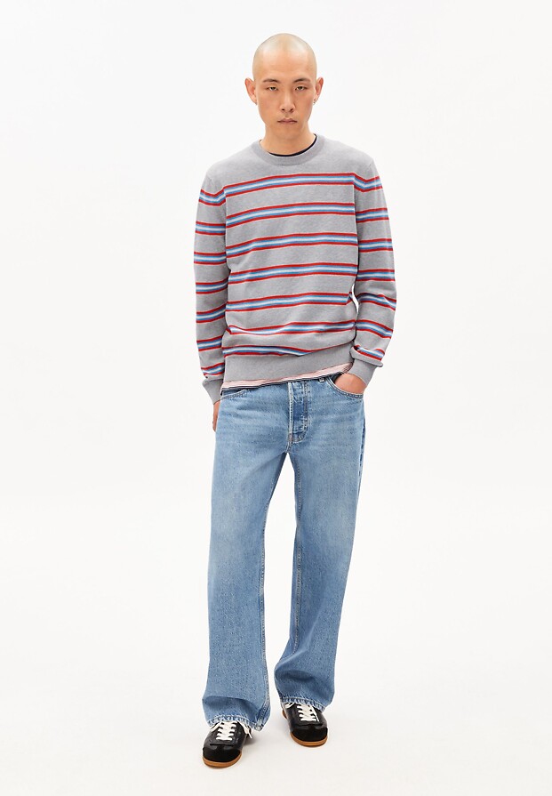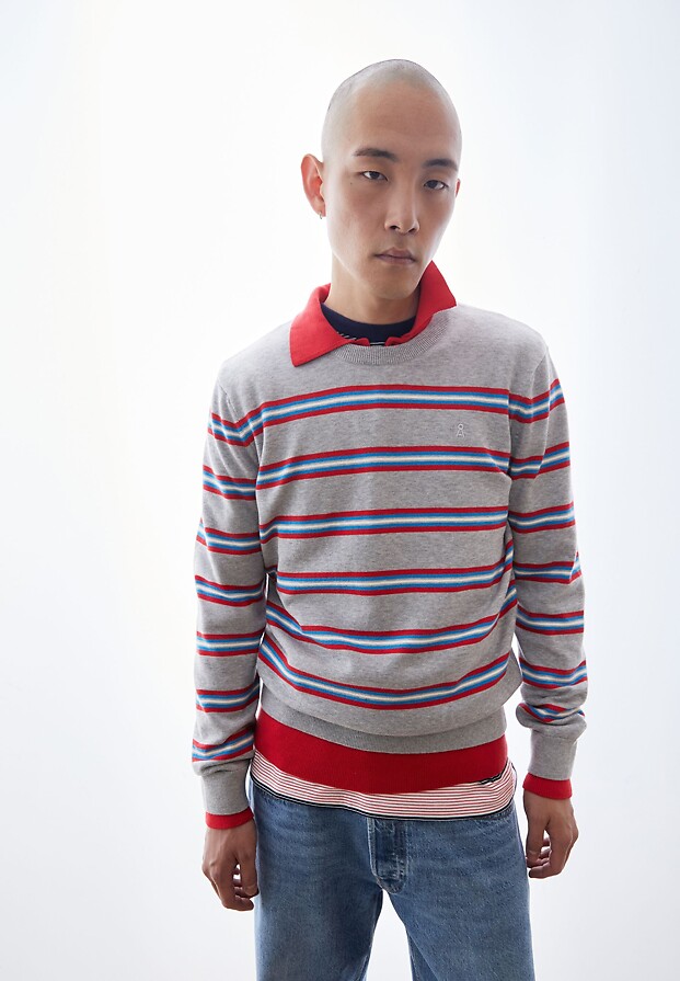 Feinstrickpullover "Loukaa Fine Stripe" - silver/red/oatmilk