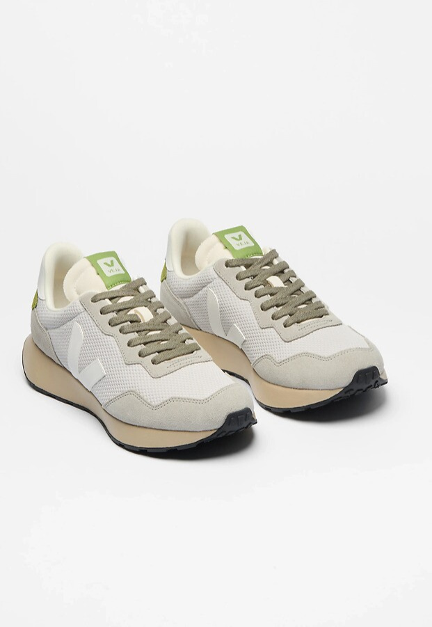 - Einlegesohle aus Amazonas-Kautschuk (11%), Ethylenvinylacetat auf Biobasis (52% mit 42% Zuckerrohr), recyceltes Ethylenvinylacetat (11%), Bio-Baumwolle (12%) und anderen Materialien (14%)