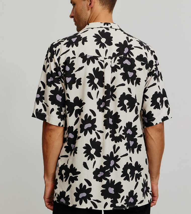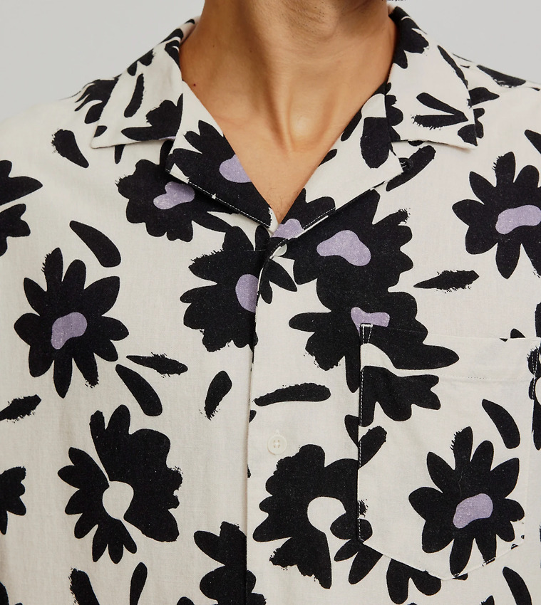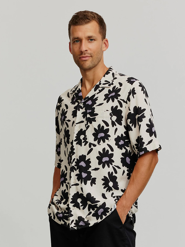 Short Sleeved Shirt "Cactus Bloom" (linen) - white