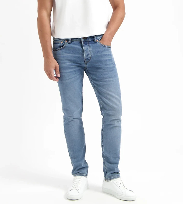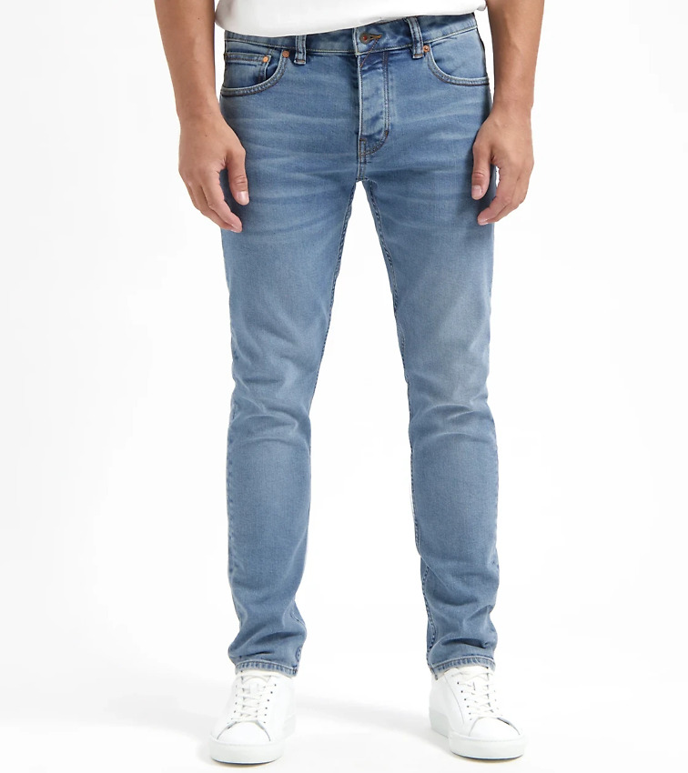 Slim fit Jeans mit schmaler Passform und schmalem Bein aus weichem und elastischem Denim in einer hellblauen Waschung.