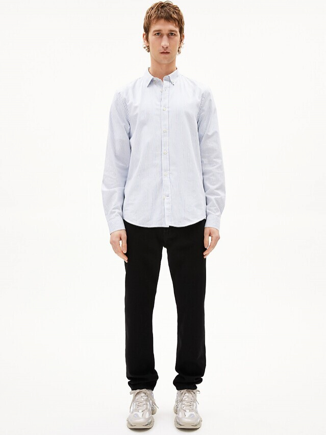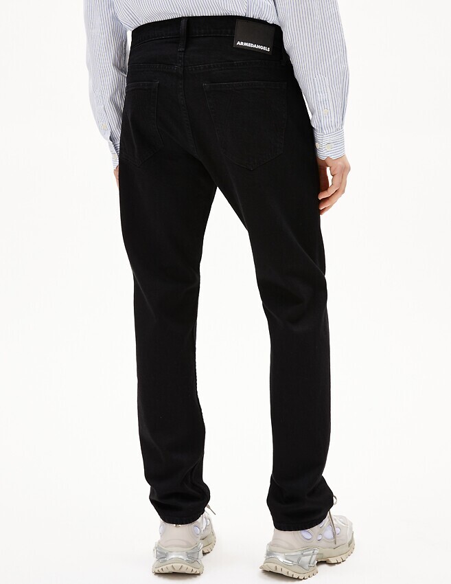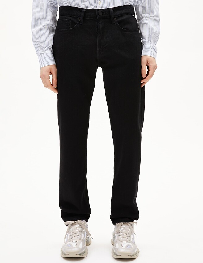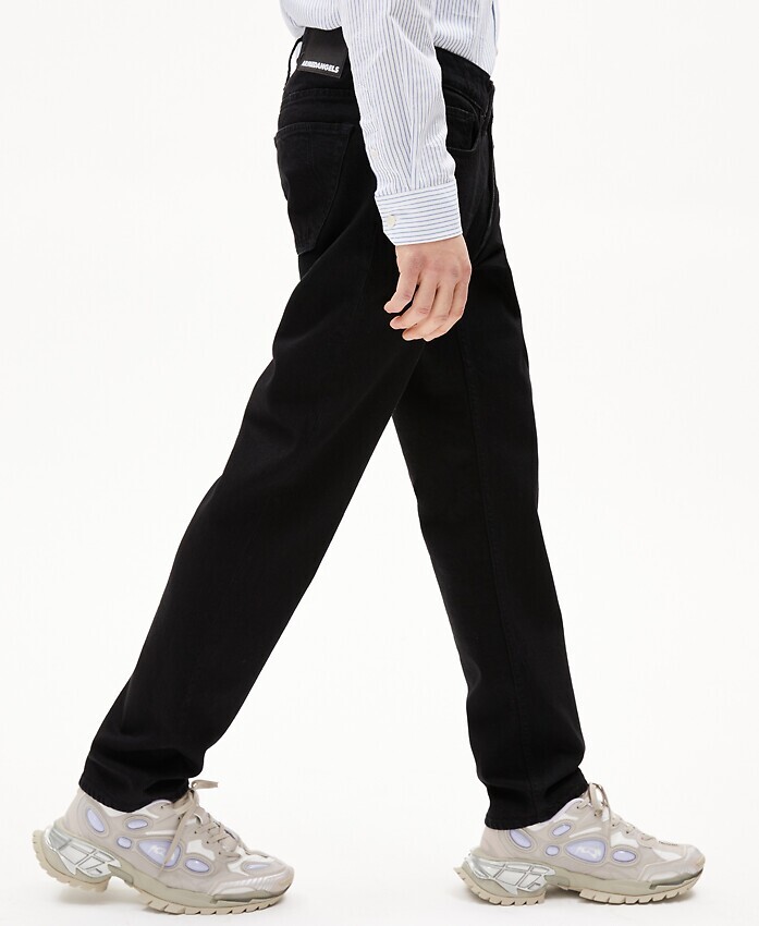 Straight Leg Mid Waist-Jeans aus Biobaumwolle und recycelter Baumwolle mit ein klein wenig Elasthan.