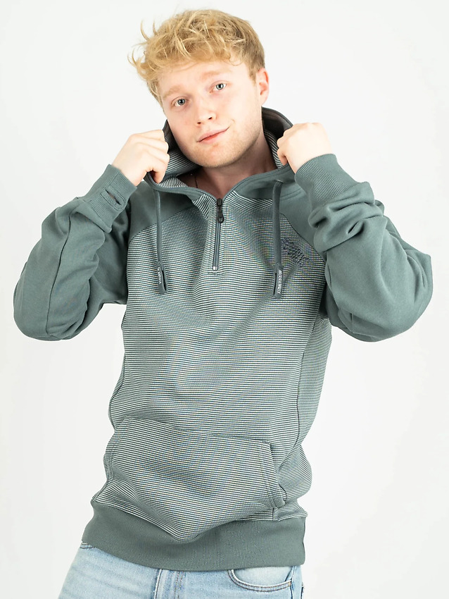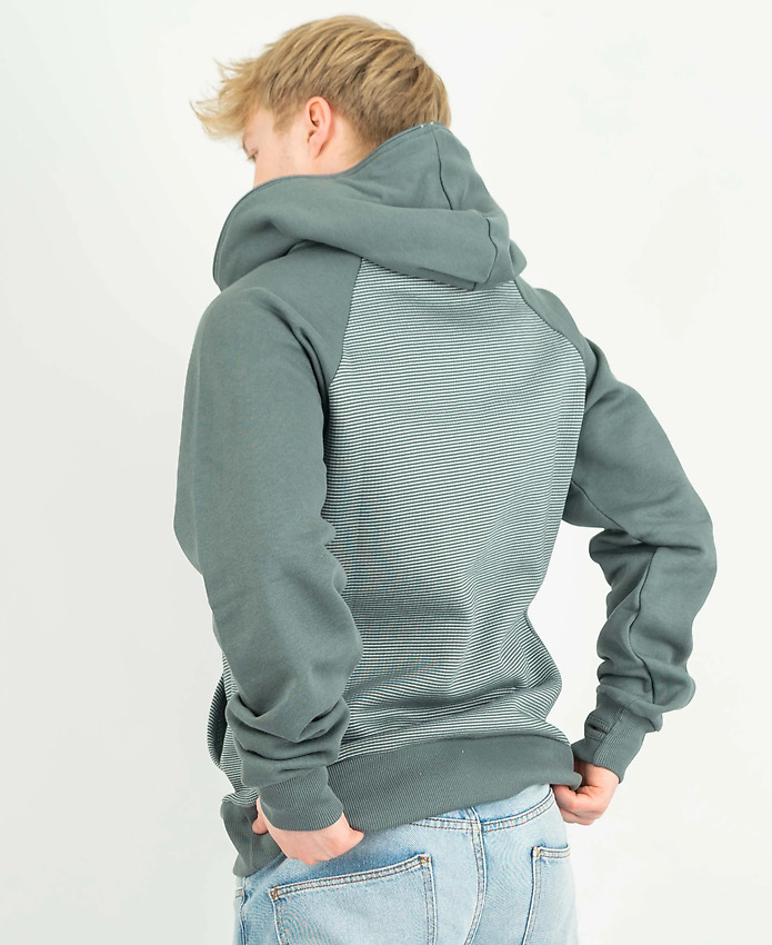 Hoodie mit Reißverschluss der einmal um die ganze Kapuze geht.