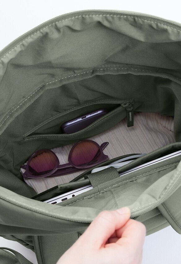 - Flexibler Rolltop-Verschluss mit Reißverschluss