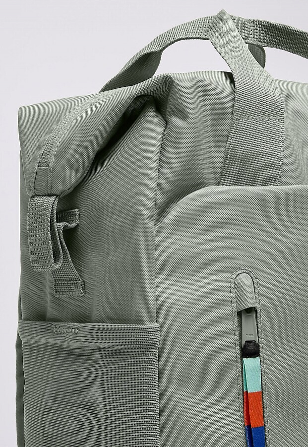 - RE:PET Hauptmaterial aus recyceltem Ocean Impact Plastic, Innenmaterial aus recyceltem PET, Polsterung aus PE-Schaum, Webbänder aus recyceltem PET, Reißverschlüsse aus recyceltem Nylon, Mesh aus recyceltem PET, Klettverschluss innen aus Polyester