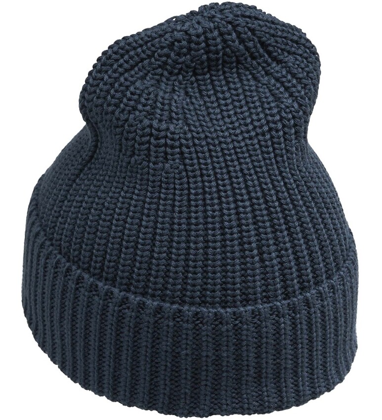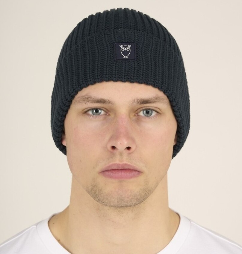 Gerippte Strickmütze aus weicher Biobaumwolle.
