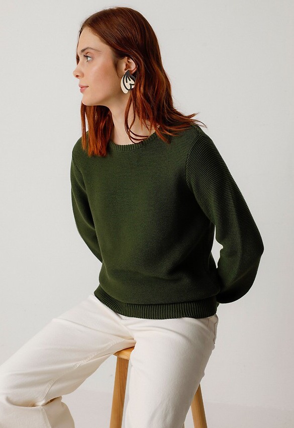 Etwas gröber gestrickter Pullover mit gemütlichem Schnitt aus superweicher Biobaumwolle.
