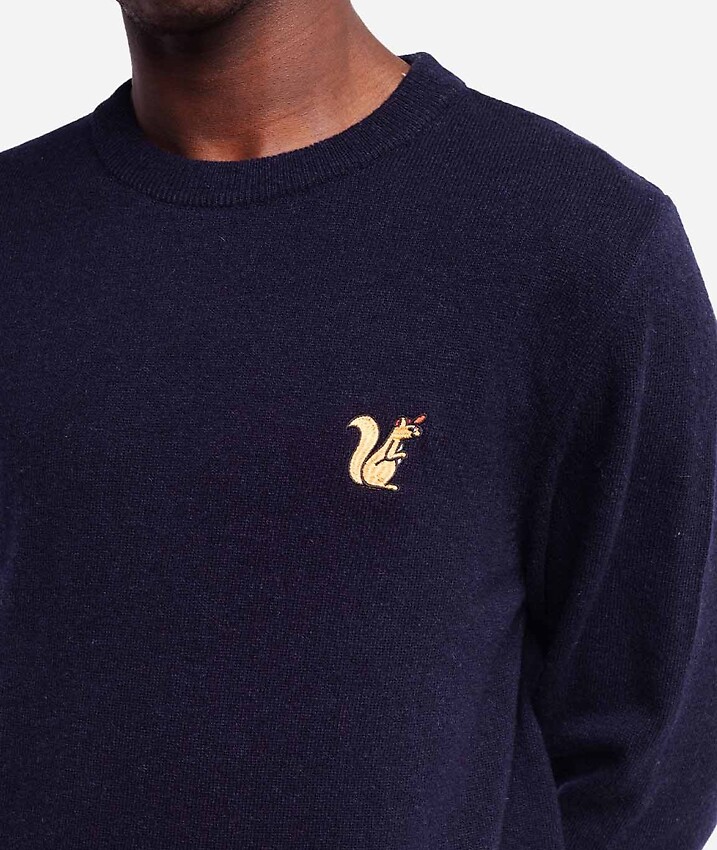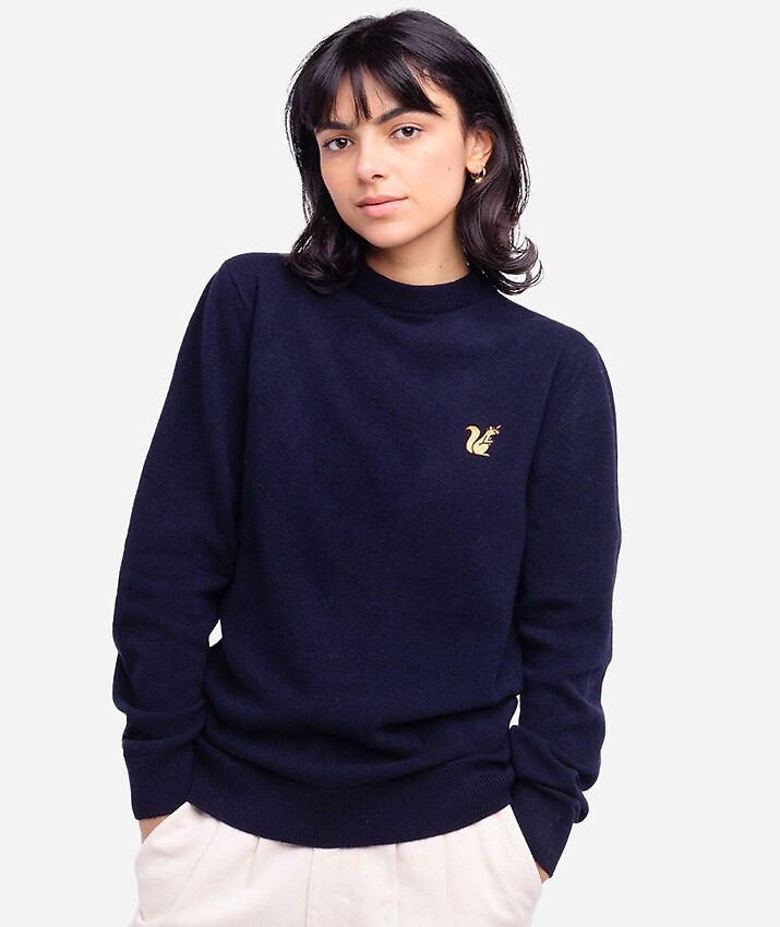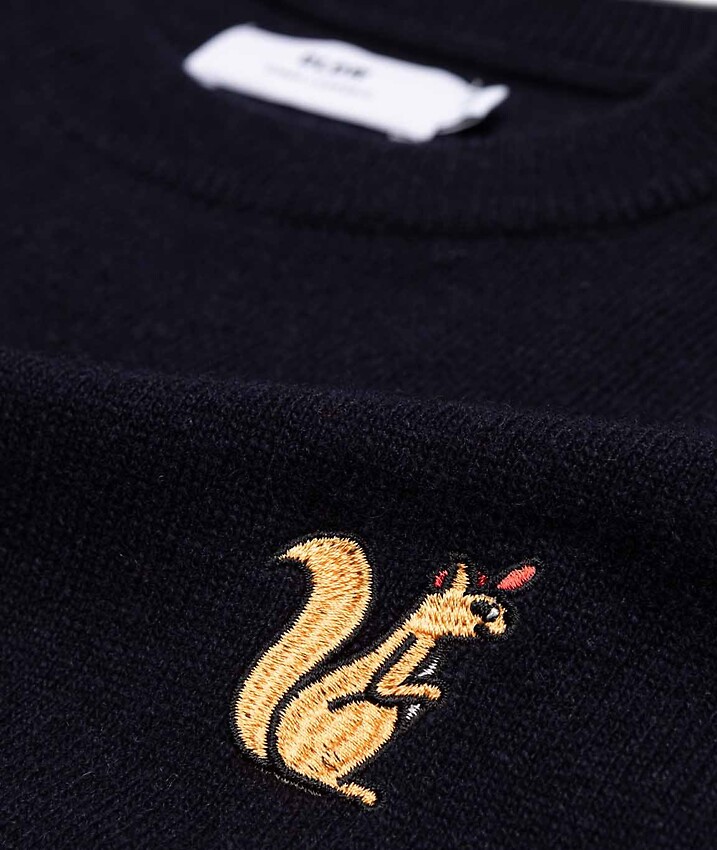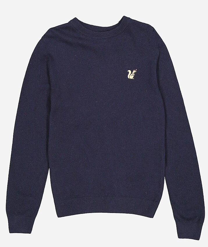 Fine knit sweater made from soft wool with small chest embroidery.