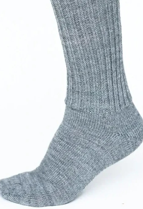 Hoher Wollkniestrumpf, am Schaft grob gerippt.