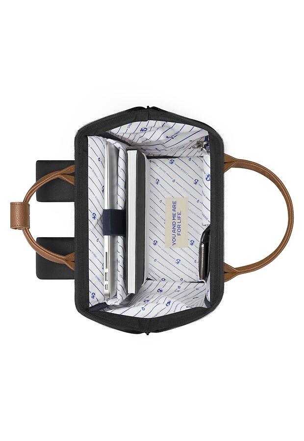 Dieser Rucksack wird mit 2 auswechselbaren Vordertaschen geliefert : Schwarz (Berghain) + Braun (Ludwig)