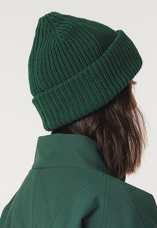 Dicke Strickmütze mit breitem Aufschlag.