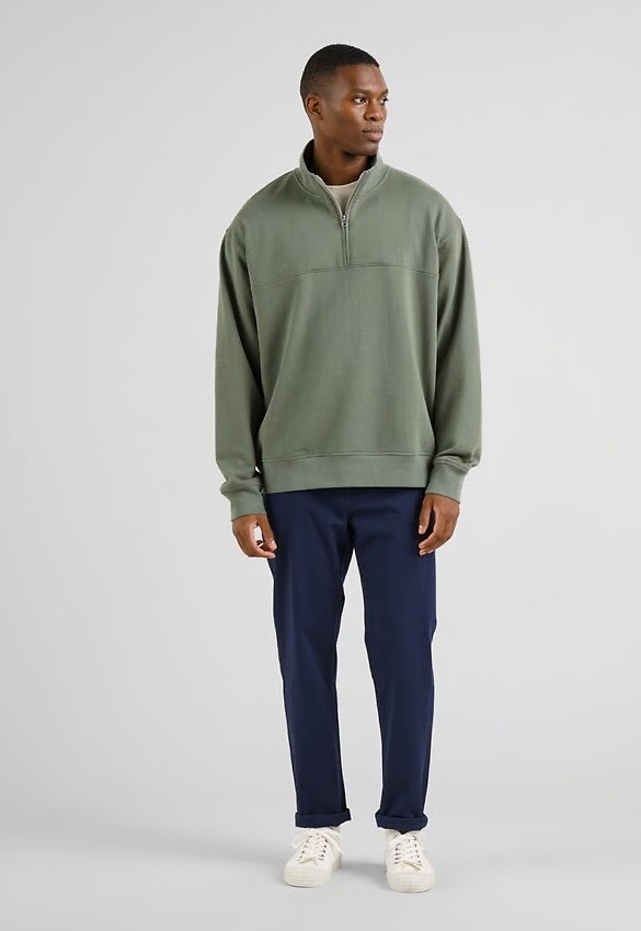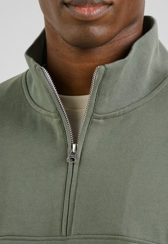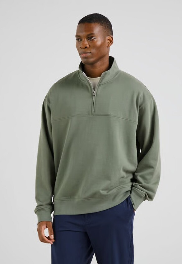 Loose fit half-zip sweater with heavier cloth and a dry feel for a particularly luxurious feel. Made from a special densely knitted yarn that lends a more intense color.