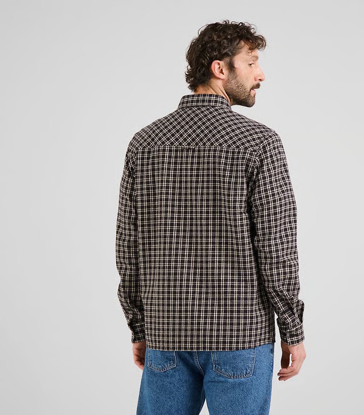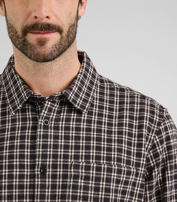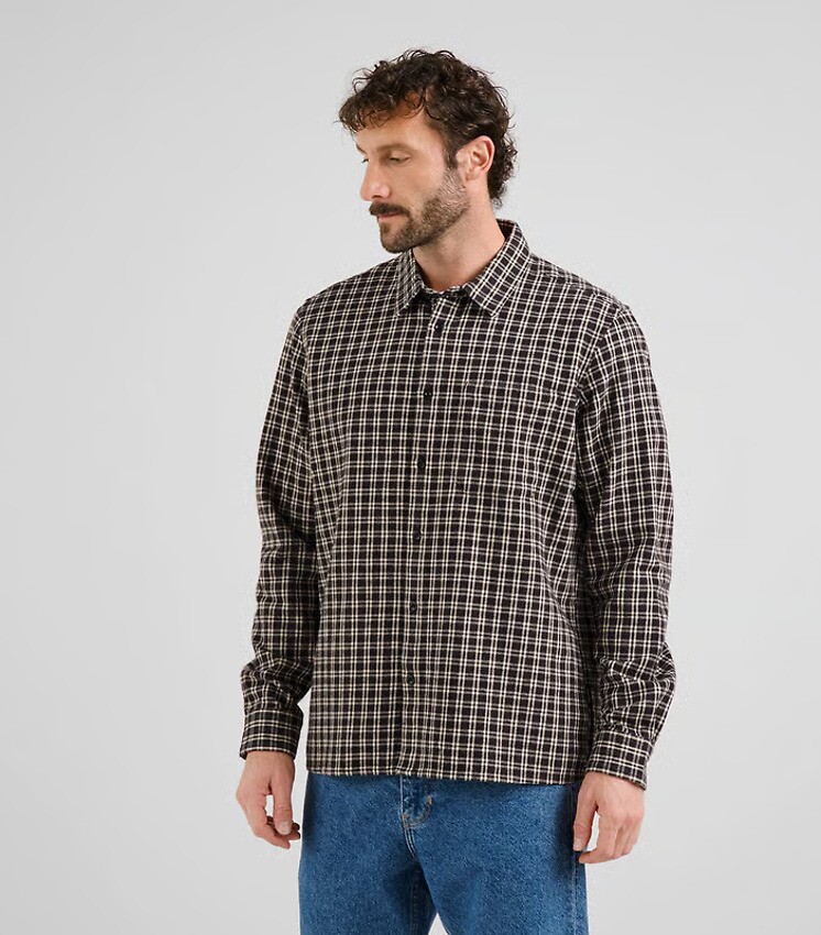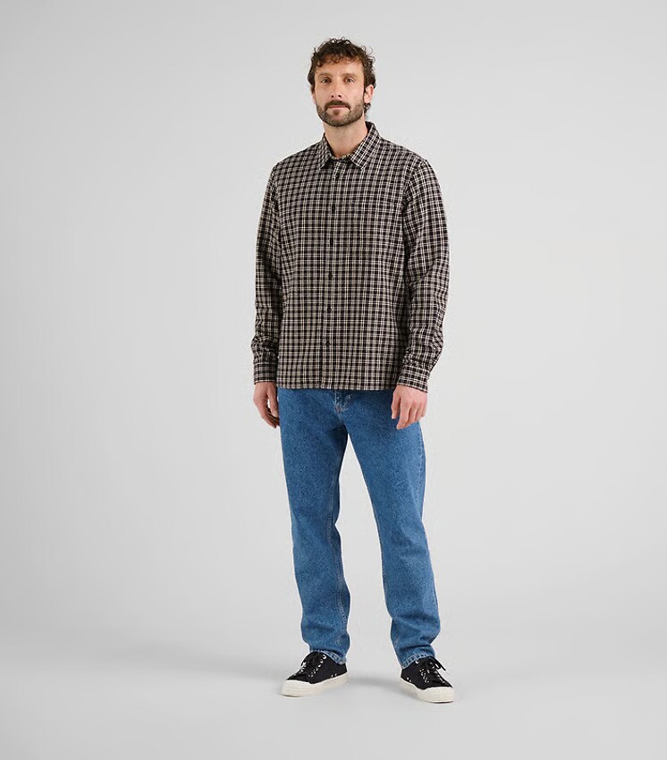 Lockeres Hemd aus warmem Bio-Baumwollflanell. Hemdkragen, Brusttasche und gerader Saum.