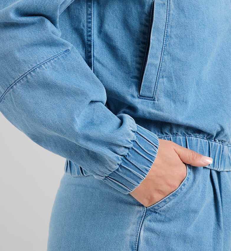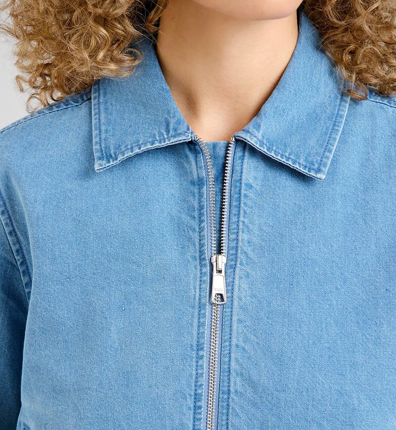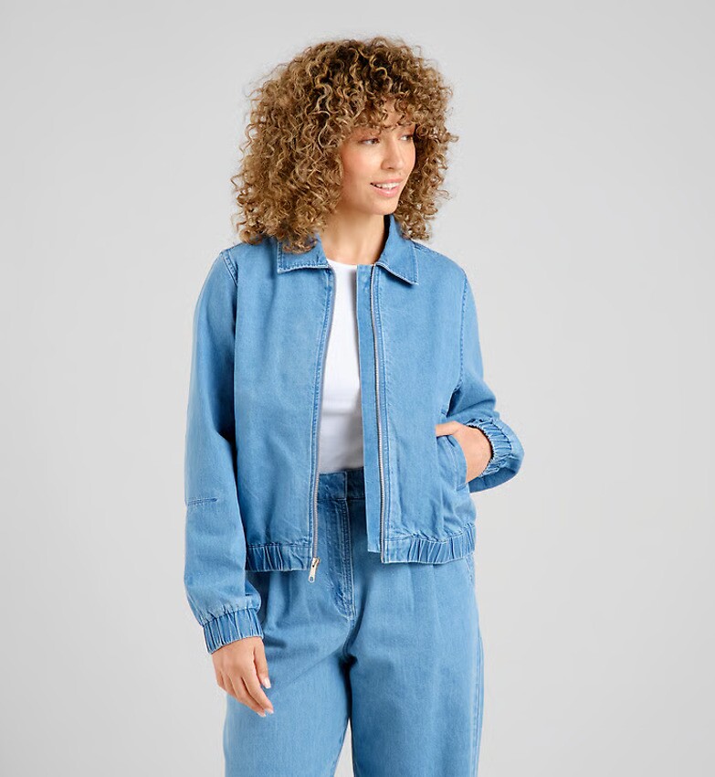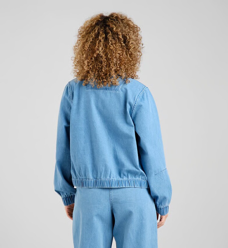 Jeansjacke mit klassischem Hemdkragen und Reißverschluss. Gummizug am Saum und an den Bündchen, mit Nähten am Ellbogen und im Nacken. Zwei seitliche Eingrifftaschen. Hergestellt aus einer Mischung aus recycelter und Bio-Baumwolle.