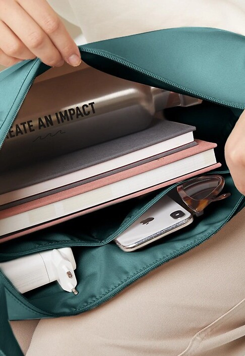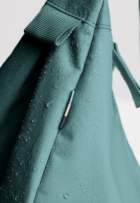 Wasserabweisend durch eine innovative und umweltfreundliche organische Polyurethan-Beschichtung, die den Inhalt der Tasche vor Nässe schützt.