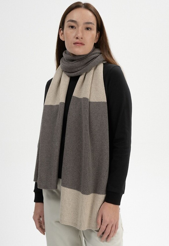 Rippstrick Schal "Kazim" - bear/kiesel gestreift