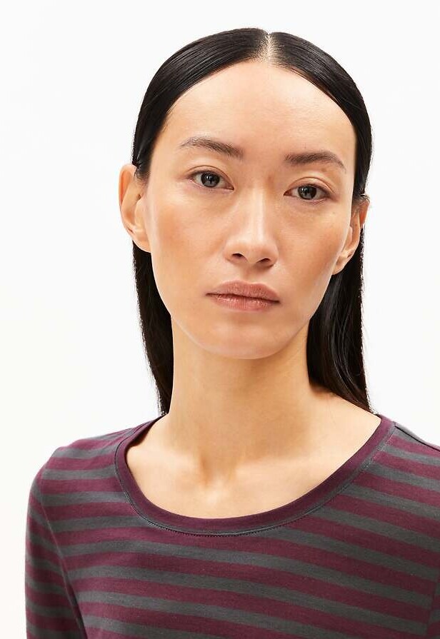 Longsleeve "Einiaraa Stripes" - dark cranberry/dark steel