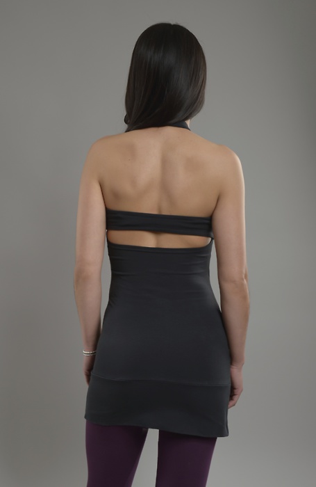 Sexy Neckholder-Tunic mit Metallringen an den Trägern, kleinen gerafften Taschen vorne und extra-breitem Bund.