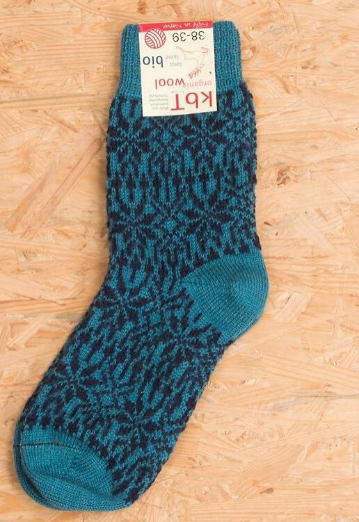 Wollsocke mit Norweger-Sternenmuster - türkis/marine