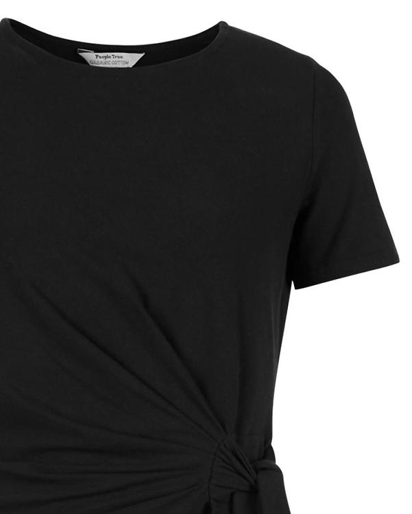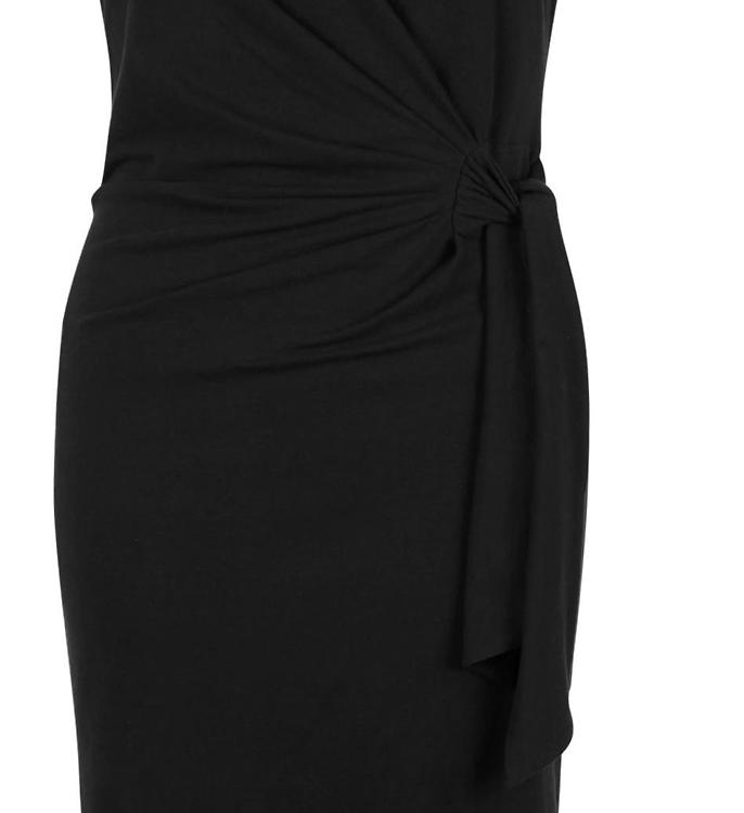 Black faux wrap jersey dress with tie waist in 95% organic certified cotton, 5% elastane.