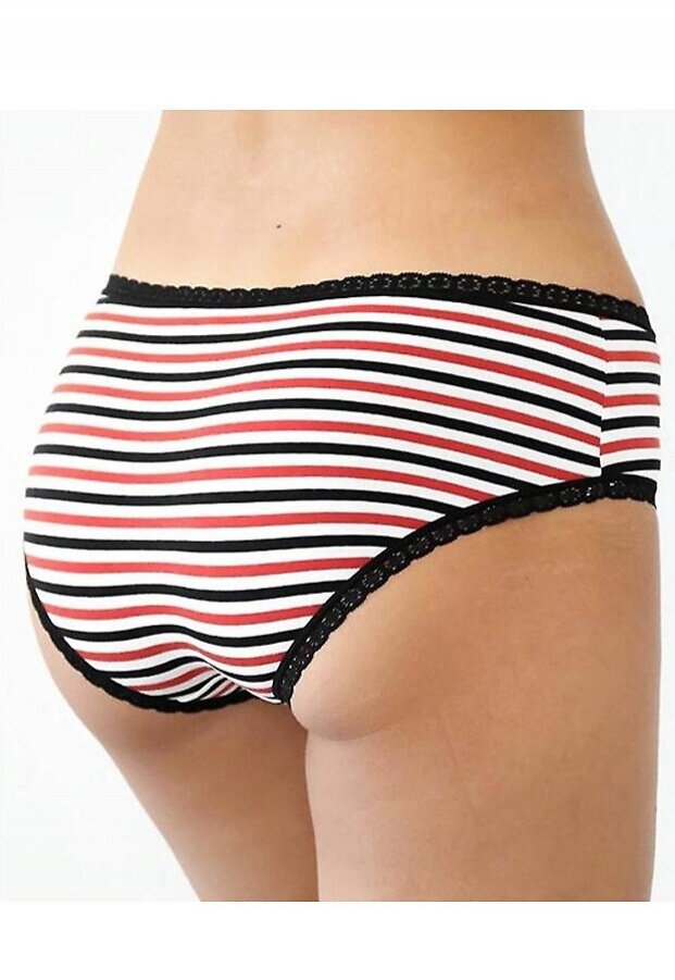 Damen Hipster mit Spitze - weiß/rot/schwarz gestreift