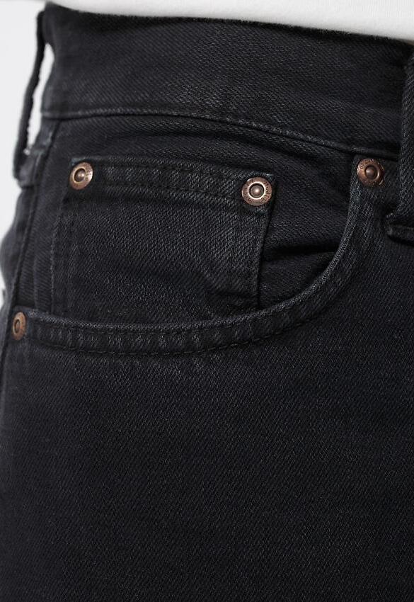 Die Jeans hat einen mit schwarz überfärbten Blauton. D.h. im Laufe der Zeit und mit mehreren Wäschen wird unter dem schwarz teilweise leicht der indigoblaue Grundton zu sehen sein.