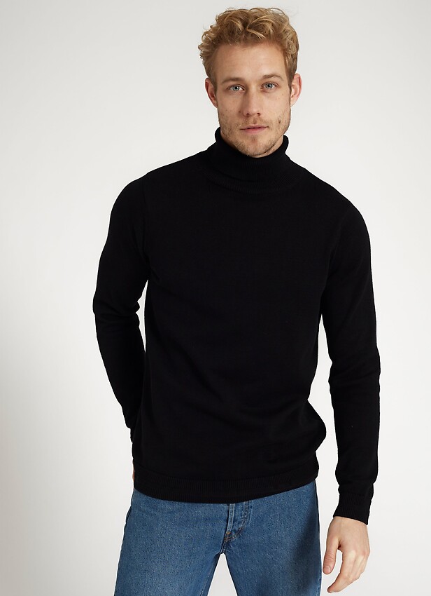 Rollkragenpullover aus weichem Bio-Baumwoll-Feinstrick.
