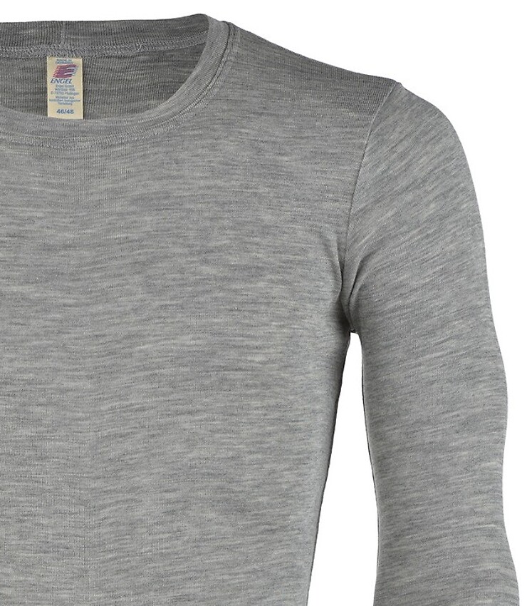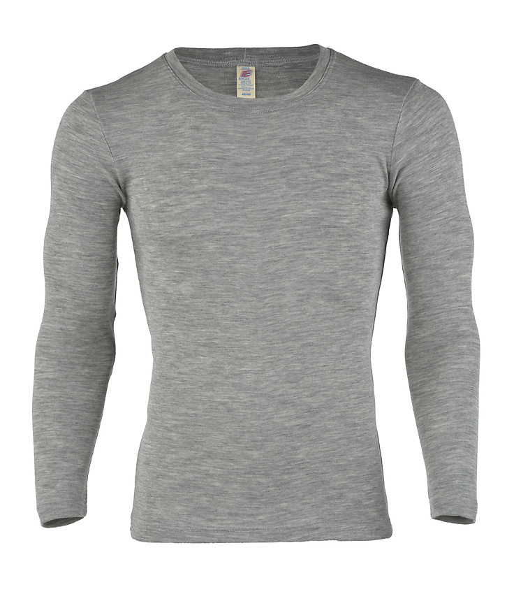 Herren-Unterhemd, lange Arme, (Wolle/Seide) - hellgrau meliert