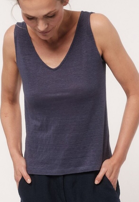 Lanius "Linen Tanktop with V-neck" - dove blue