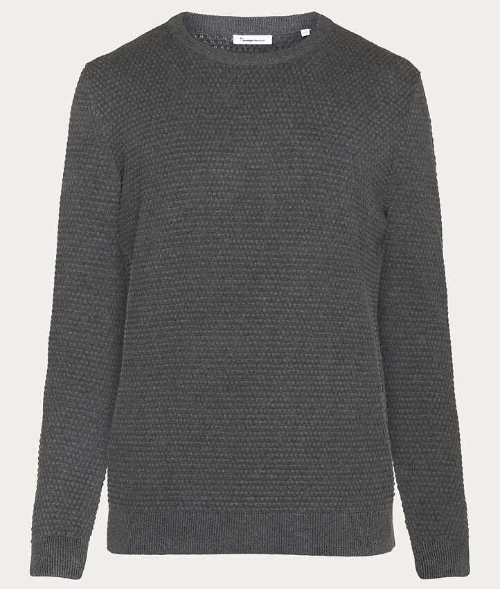 Vagn regular bubble knit crew neck - dark grey melange