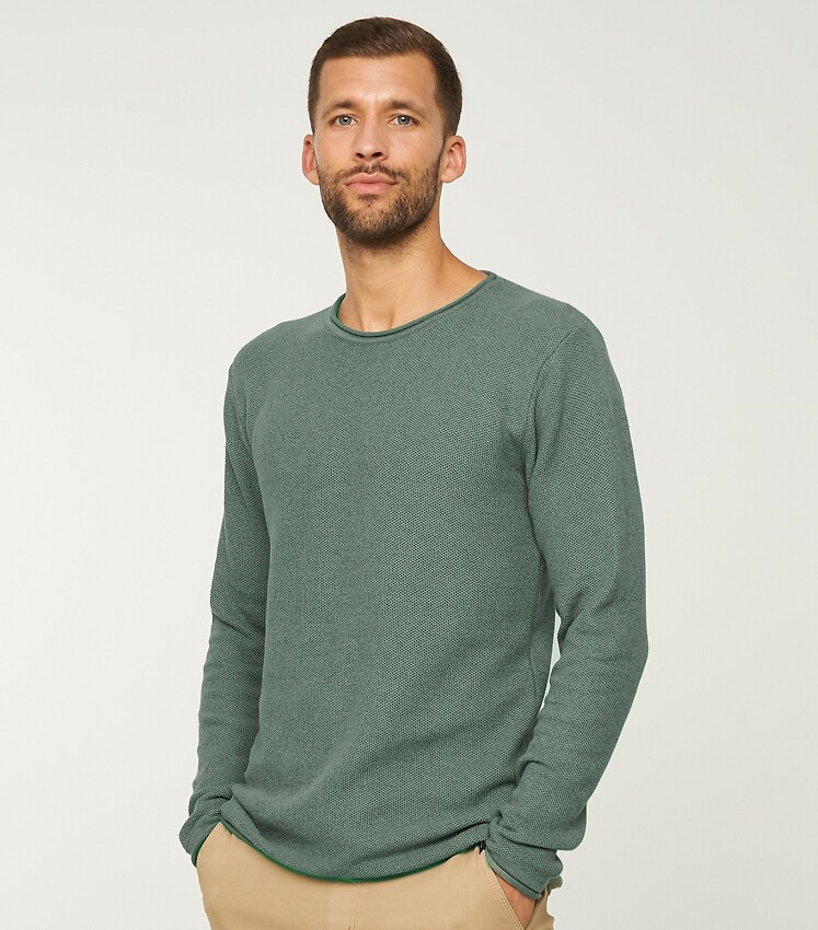 Melierter Rundhalspullover aus weicher Bio-Baumwolle.