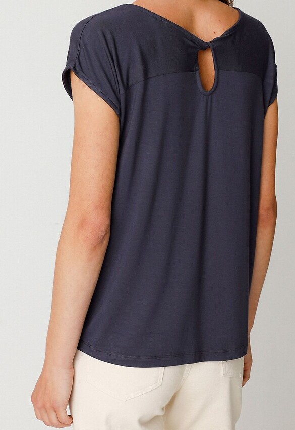 Locker geschnittenes Top mit kurzen Ärmeln aus superweichem Material.